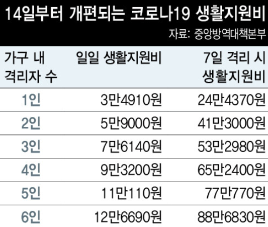 : 2월 14일부로 변경됨. 가구원수 기준 => 실제 자가격리자 기준으로 지급