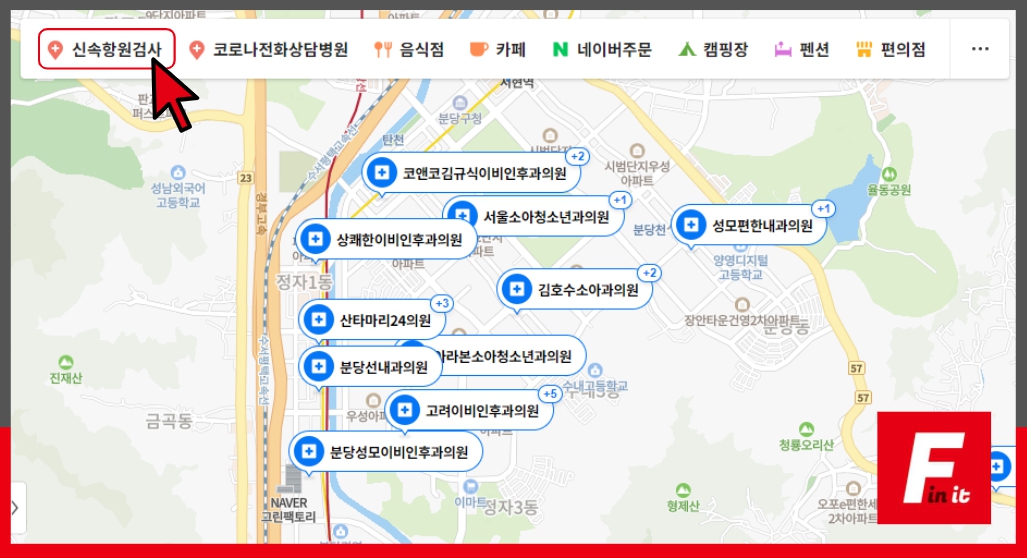 - 네이버, 네이버 지도 앱(App)을 실행해 신속항원검사를 검색