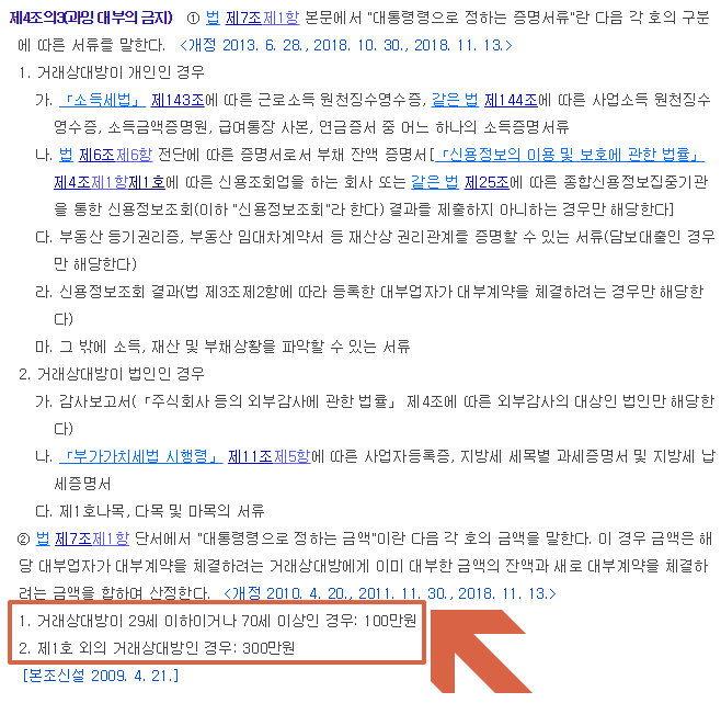 물론 이 규정은 최소한의 대출조건을 명시하고 있어 아무리 적은 금액이라도 50만원 정도의 급여를 빌려도 소득확인과 재임용확인을 하는 것은 대부업체의 자율적 판단에 따른 것이다. 그리고 최근 법정 최고 금리가 낮아졌기 때문에, 대부분의 대출회사들은 소득 확인과 재임 기간을 거쳤다.