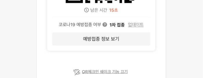 QR코드 체크인을 확인해보면 접종 정보 불러오기가 만들어졌습니다. 이용하려는 시설에서 QR코드 체크인을 하거나 수기명부에 개인안심번호를 기재할 수 있습니다.