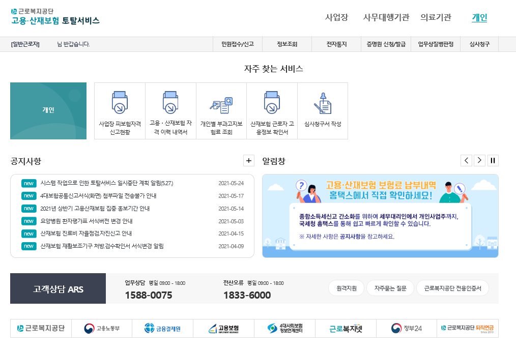 > 개인 > 고용·산재보험 자격 이력 내역서