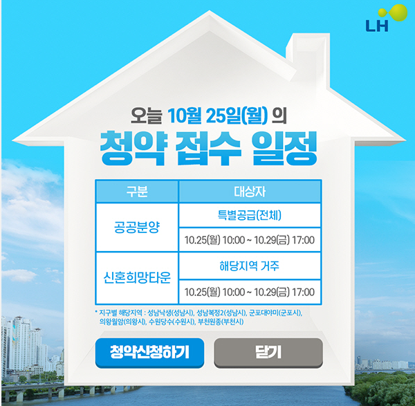 성남, 남양주, 부천, 의왕, 파주까지 유형, 자격별 청약일자를 유의하자