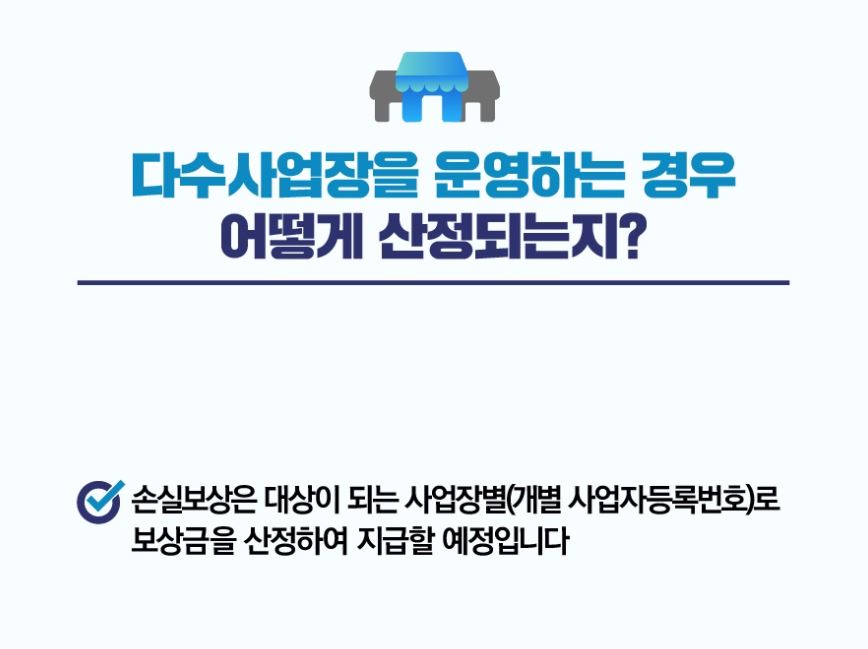 - 보상 산정방법 : 신청자에 한하여 정부가 알아서 계산(국세청 신고금액기준)