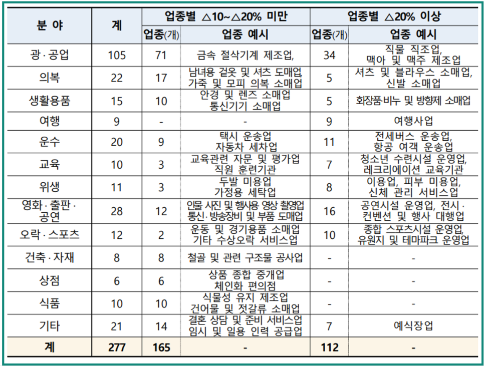 물론, 칸의 제약으로 이 정도만 적었지만 다른 업종들도 많으니까 세부사항은 홈페이지에서 찾는게 제일 정확합니다.