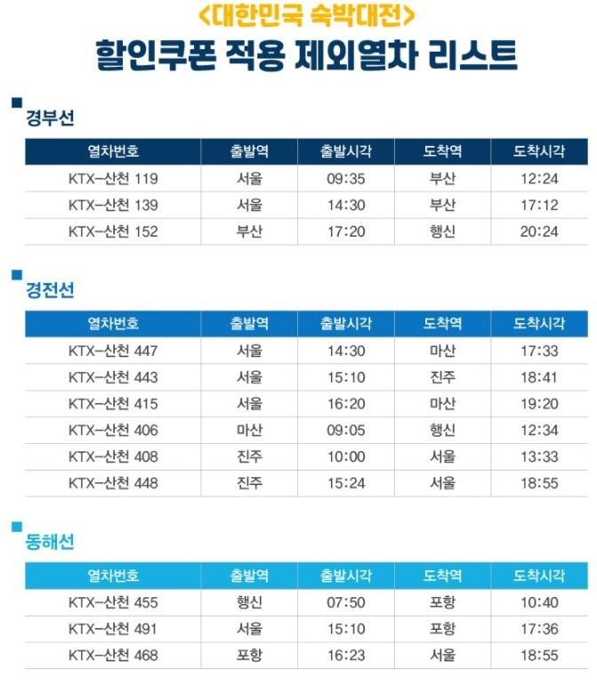 대한민국 숙박대전 KTX 25% 열차할인쿠폰